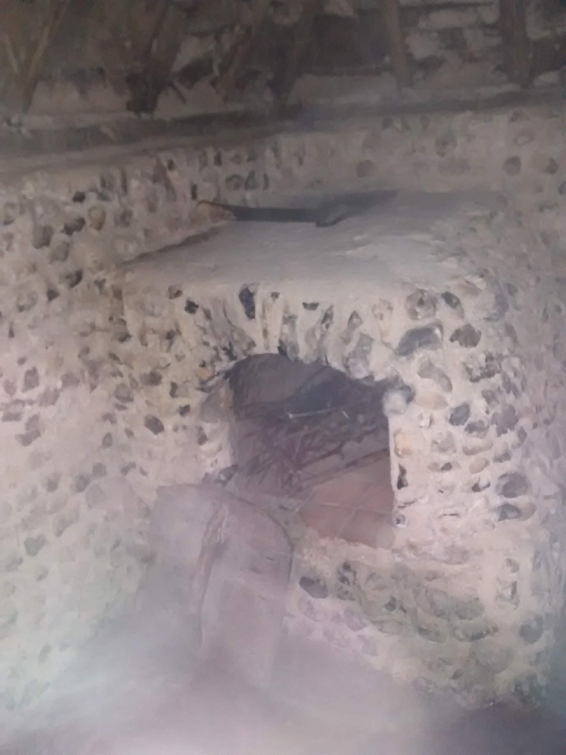 The doorways are very low, the walls are made of wattle and daub and there is no chimney for the fire. The house is at the Weald and Downland Museum, there is more information about it here.