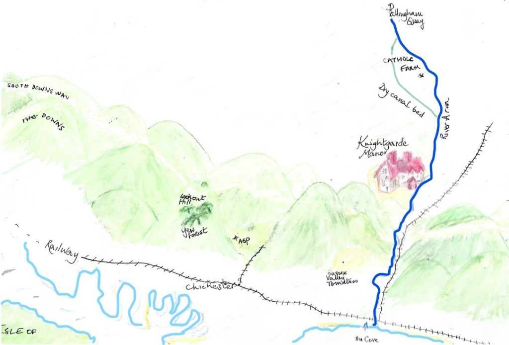 The South Downs are rounded hills, not pointed mountains. They are in a National Park – here is the website. If you compare an actual map with the picture you’ll see that some of the geography of Knightgarde Manor’s world is slightly different.