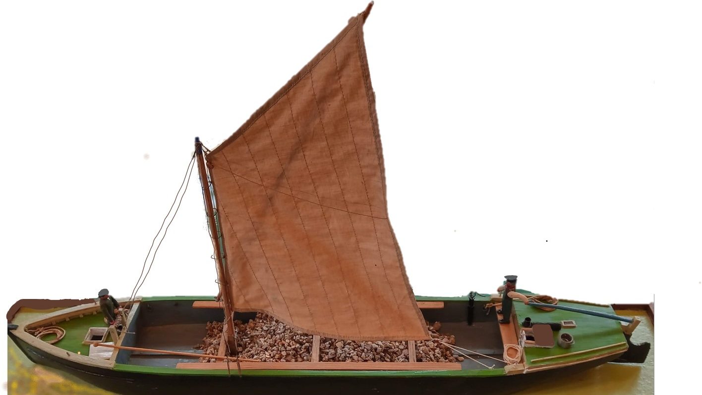This model is at the Wey and Arun Canal Trust office by the canal in Loxwood. Jethro’s barge would have been rather like this. I gave him a cabin he could shelter in (or use to trap Sylvia and Peter). He loaded the barge with wood, not stones. You can out more about the canal between the River Arun and the River Wey here.